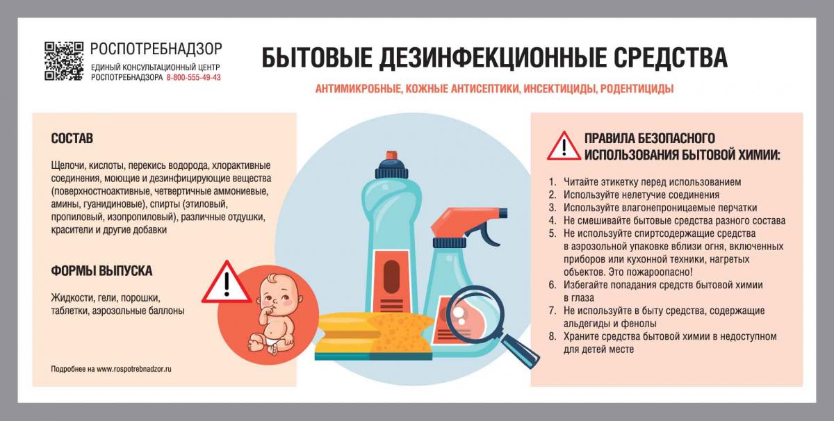 Использование дезинфицирующих средств позволяет гражданам защитить себя от различных инфекций, передающихся контактным и воздушно-капельным путями. Роспотребнадзор напоминает, что для того чтобы сохранить трудоспособность и здоровье, необходимо соблюдать правила использования средств бытовой химии.