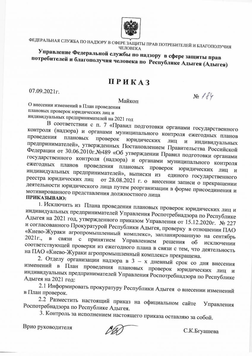 О внесении изменений в План проведения плановых проверок ЮЛ и ИП на 2021 год
