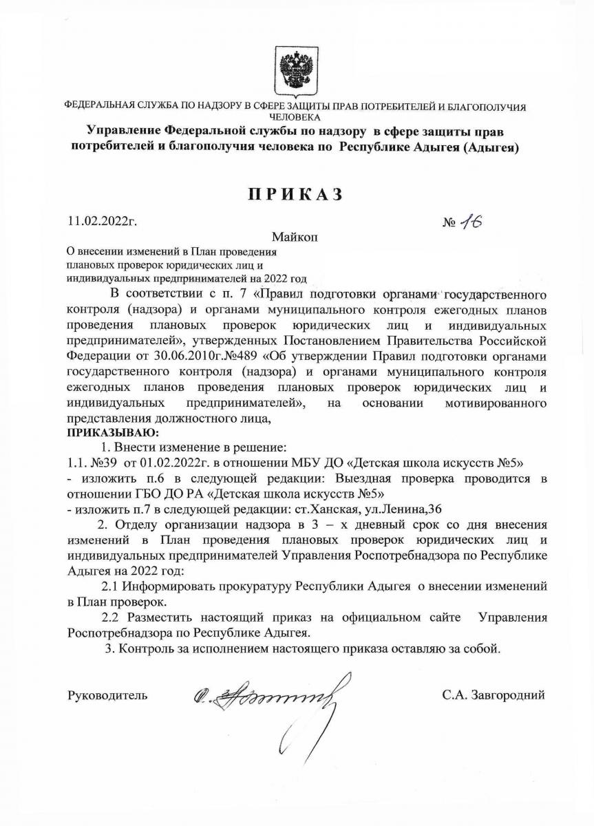 О внесении изменений в План проведения плановых проверок ЮЛ и ИП на 2022 год