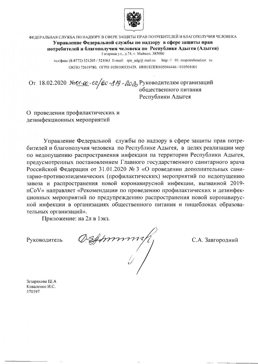 В связи с неблагополучной ситуацией по новой коронавирусной инфекциив Китайской Народной Республике и в целях недопущения распространения заболеванияна территории Российской Федерации необходимо обеспечить соблюдение мер предосторожности, а также проведение профилактических и дезинфекционных мероприятий при оказании услуг общественного питания.