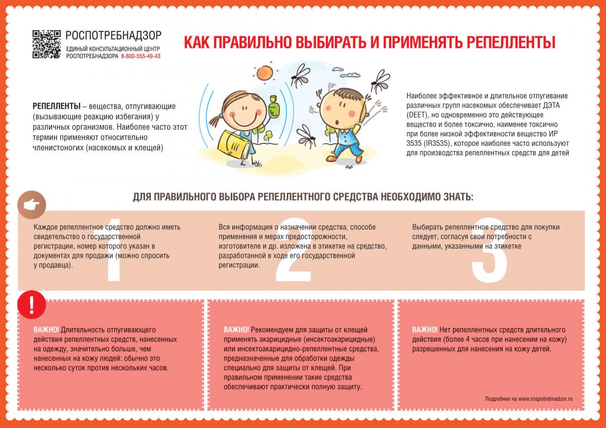 ВАЖНО! Репеллентных средств длительного действия (более 4 часов при нанесении на кожу) разрешенных для нанесения на кожу детей не существует.
