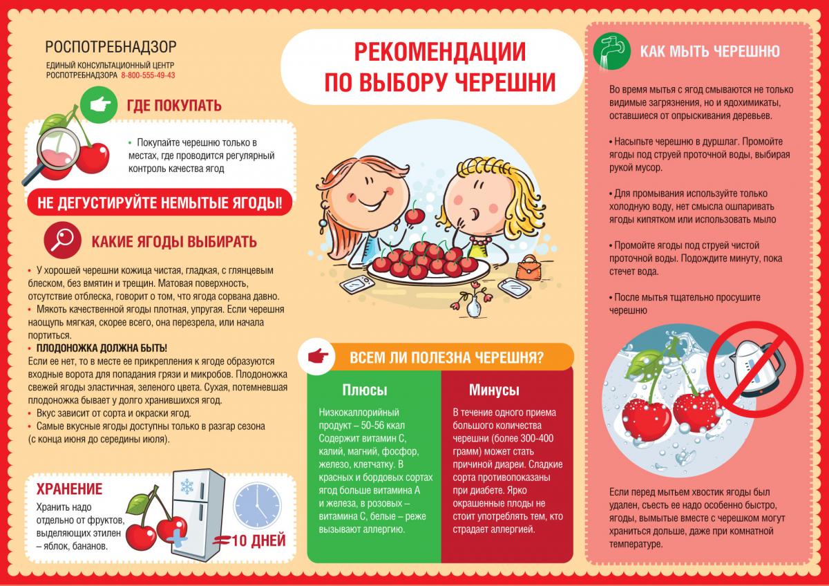 Роспотребнадзор напоминает, как выбрать вкусную черешню. Подробнее о том, на что стоит ориентироваться при выборе черешни, в нашей памятке.