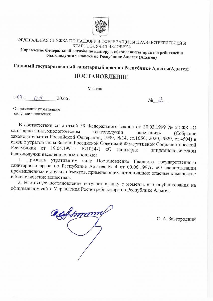 Постановление от 19.09.2022г. №2 "О признании утратившим силу Постановление от 09.06.1997г. №4