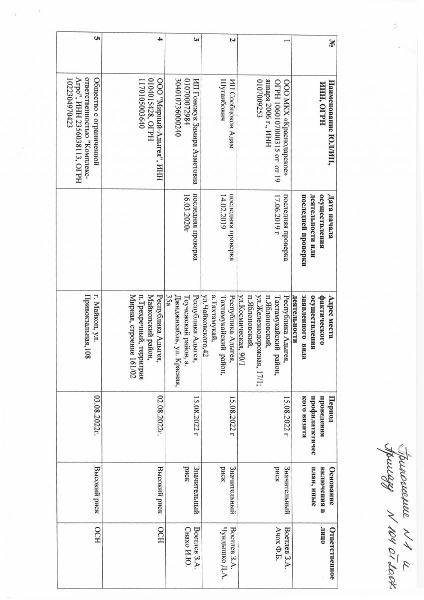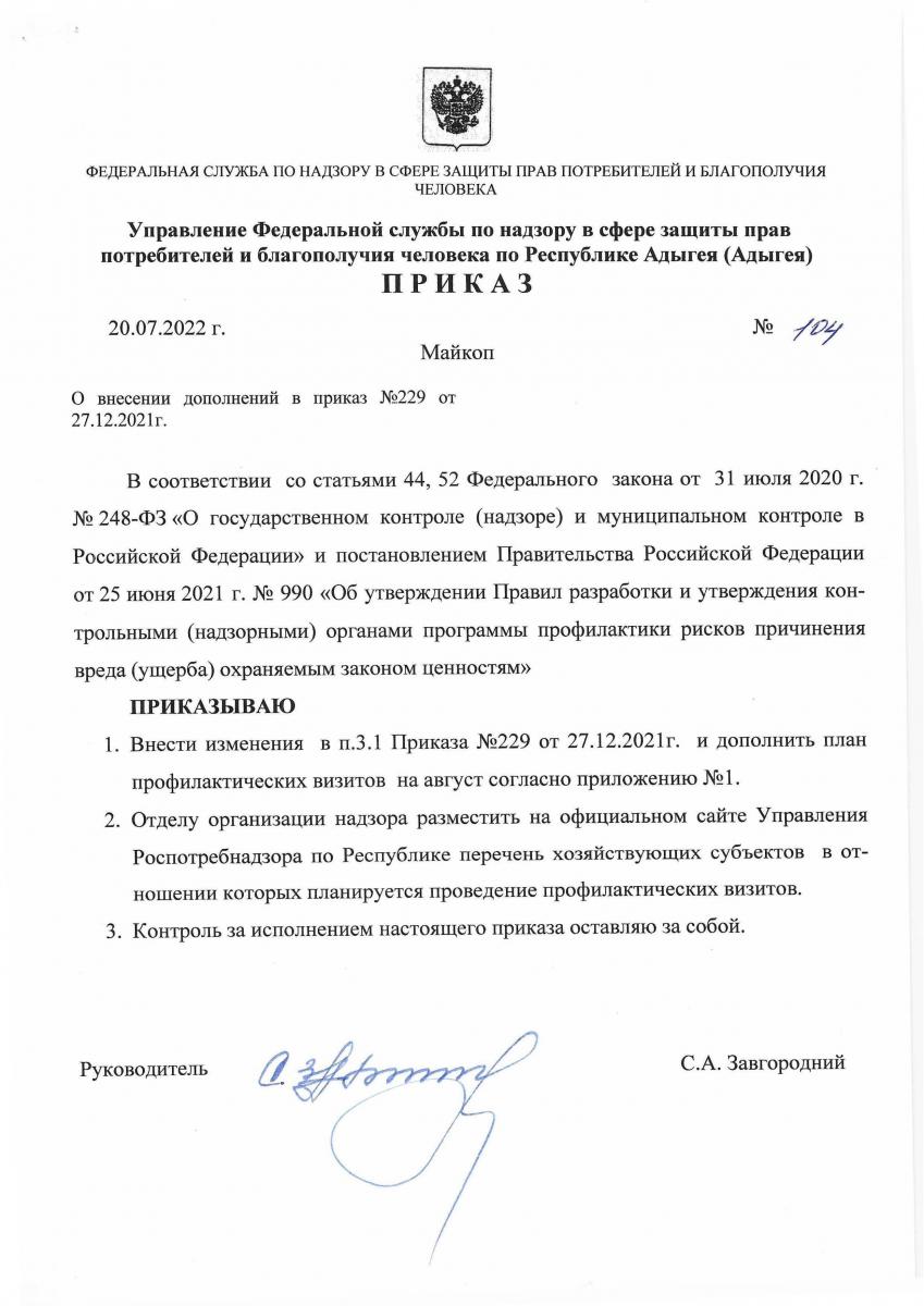 Приказ №104 от 20.07.2022 "О внесении дополнений в приказ №229 от 27.12.2021"