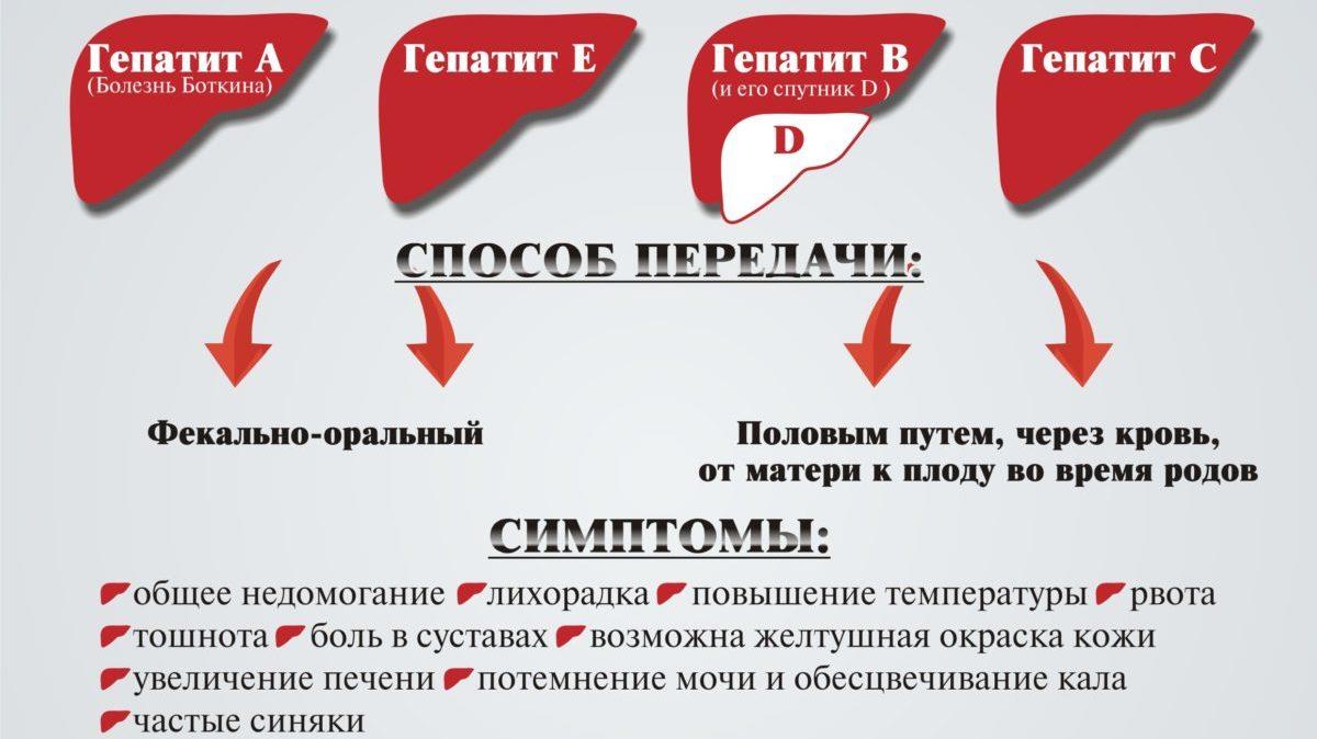Выделяют вирусный гепатит — его вызывает вирус, способный размножаться в клетках печени. Гепатиты, вызванные разными вирусами, передаются по-разному, однако все они могут вызывать острое и хроническое воспаление печени, которое порой приводит к циррозу и раку. Гепатит Е может вызывать смерть у 20% беременных женщин.
